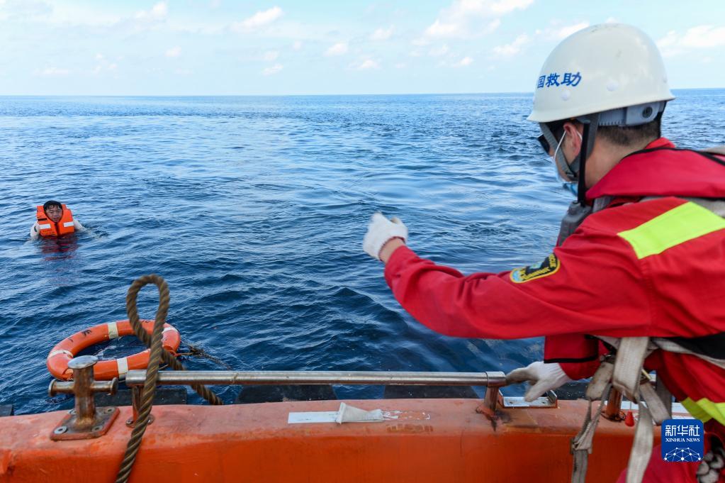 10月1日,“南海救115”轮船员在西沙海域进行模拟演练。