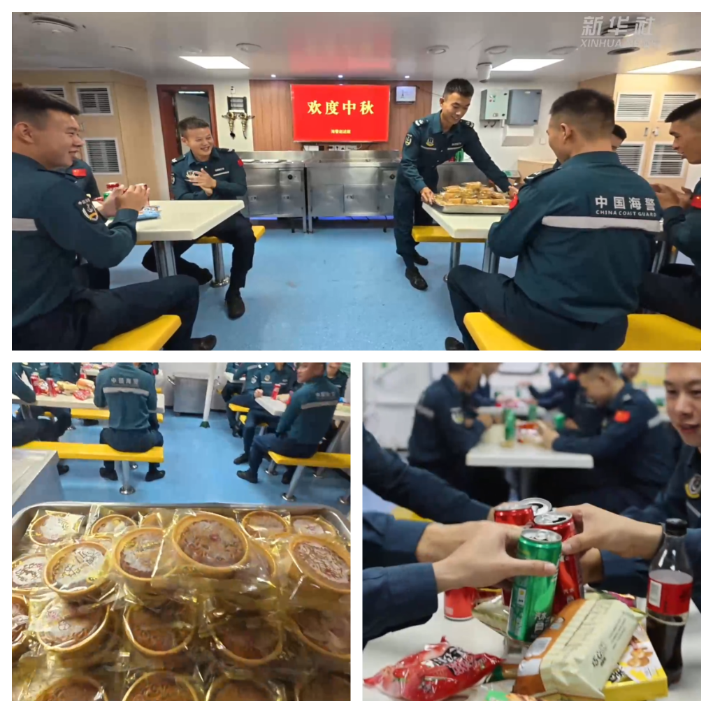 中秋佳节,正在我国南海海域巡航的中国海警赵述舰内一片欢声笑语,执法员们齐聚一堂共度海上中秋夜。
