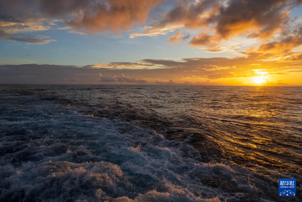 日落时分,黄岩舰在中国南海黄岩岛海域巡航值守(12月1日摄,无人机照片)。