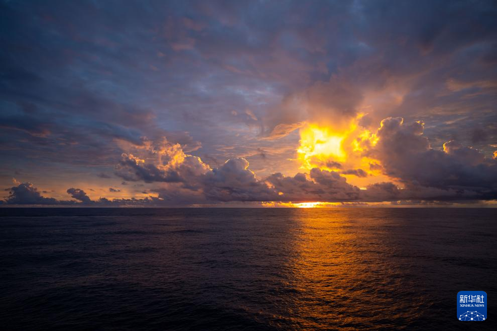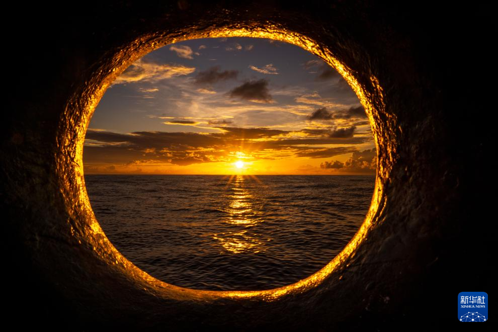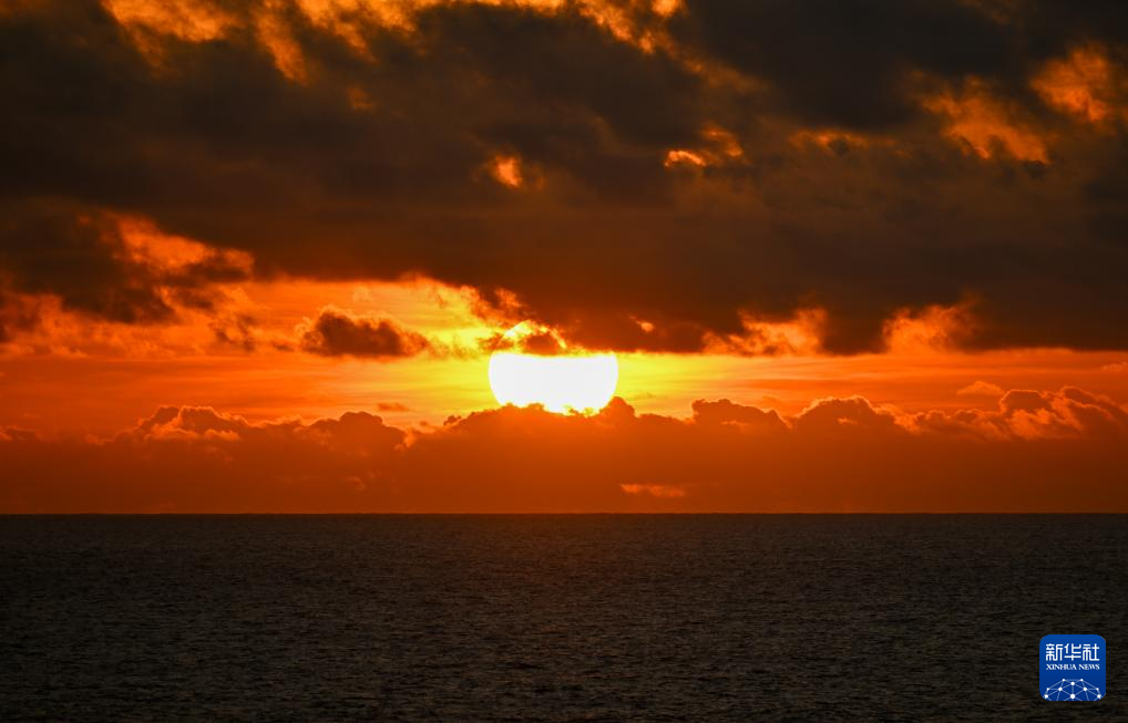 12月1日在巡航值守于中国南海黄岩岛海域的黄岩舰上拍摄的日出。